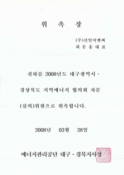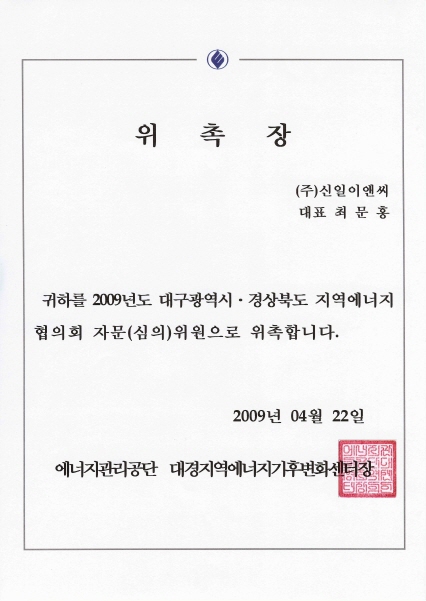 대구광역시.경상북도 지역에너지 협의회 자문(심의) 위원으로