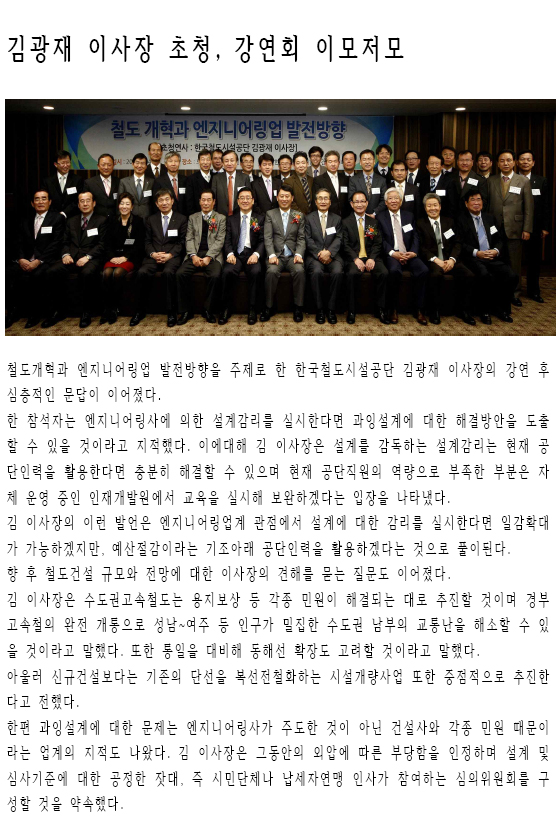 | "한국철도시설공단 김광재 이사장 초청 강연회" | |