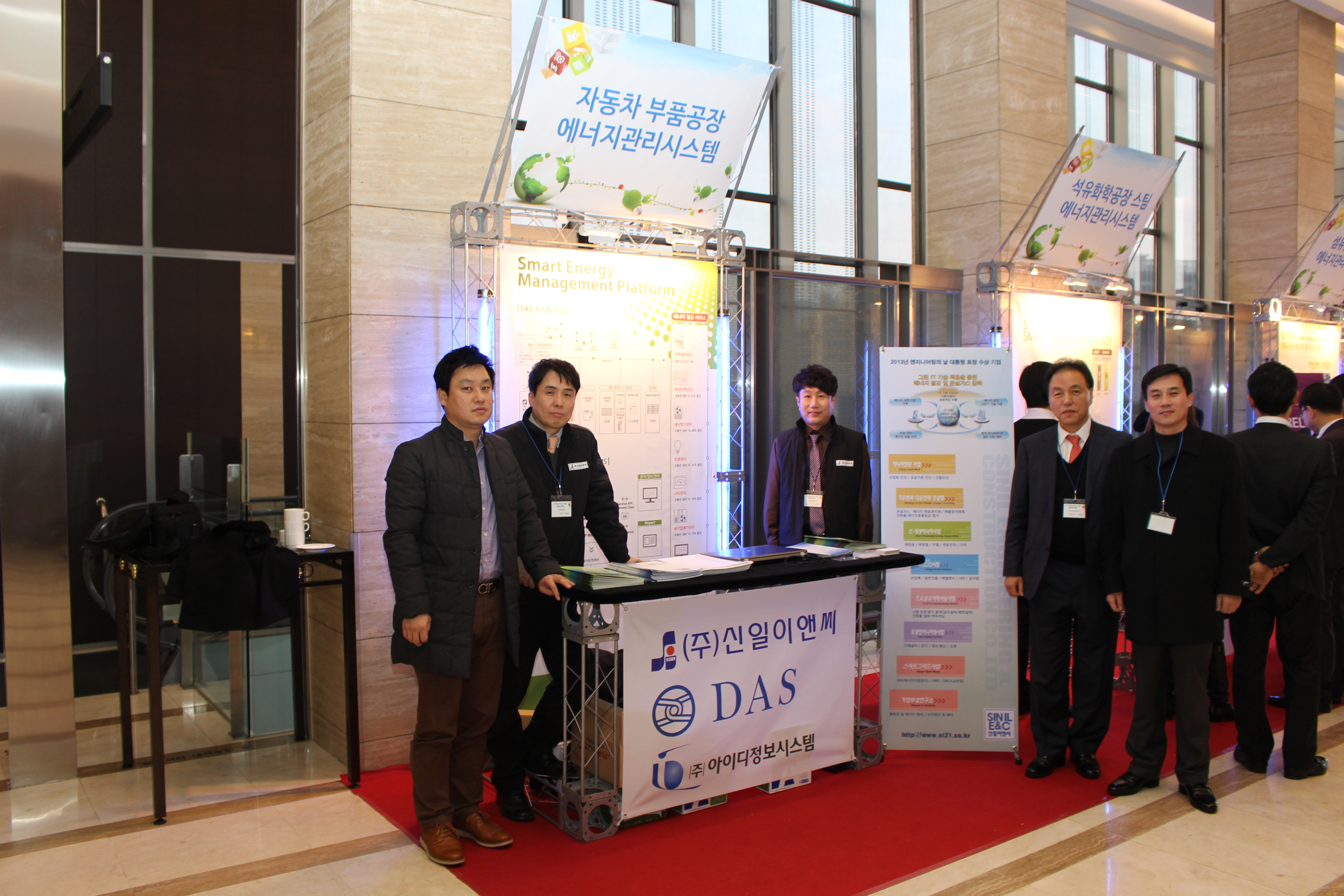 주요내용 : 2012년 모범사례 및 2013년 IT기반 ESCO 시범사업 성과보고회에서 신일이앤씨가 주관기업으로 수행한 ㈜다스 공장의 “자동차 부품공장 에너지관리시스템(연간절감액 : 3.5억원, 절감율 : 13%, ROI : 1.9년)”을 발표하고 전시 부스로 홍보하였음.