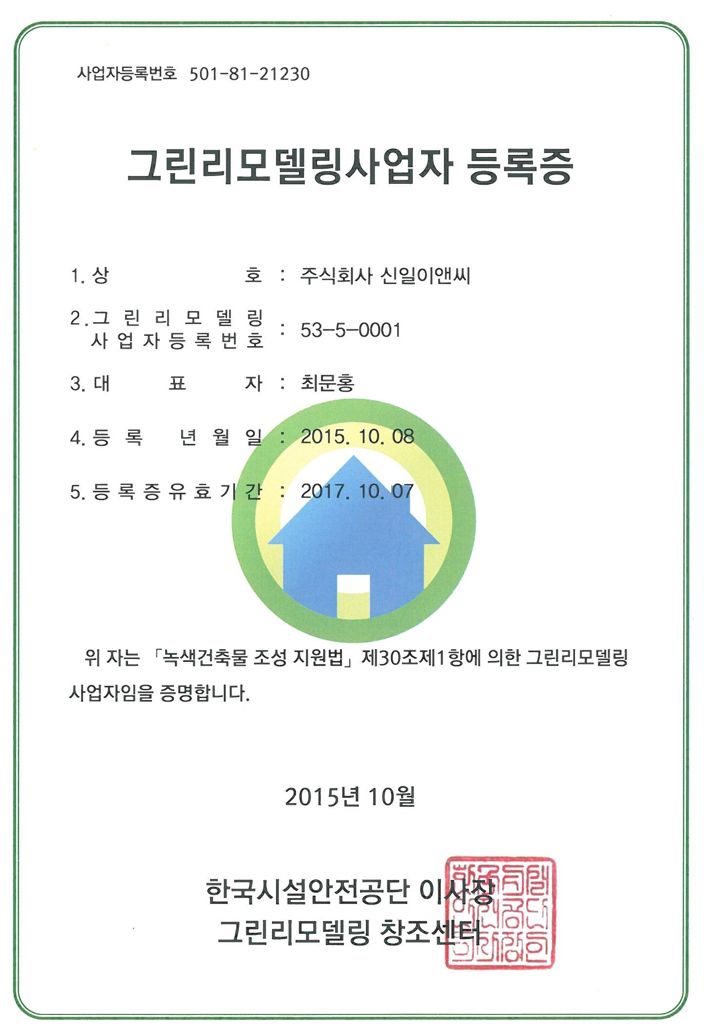| 신일이앤씨가 그린리모델링사업자 등록을 했습니다. | |